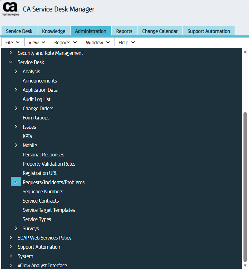 1. Log in to your CA Service Desk account and navigate to the Administration Section.
