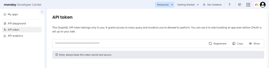 * Create one user in Monday.com that is dedicated to <code class="expression">space.vars.SITENAME</code>. This user should not perform any other action from Monday.com’s user interface. This user is referred to as an 'Integration User' in the documentation.