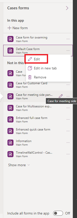 11 . From the right menu, select the form and click on **Edit**.
