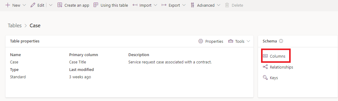 3 . Navigate to **Schema** and select the **Columns**.