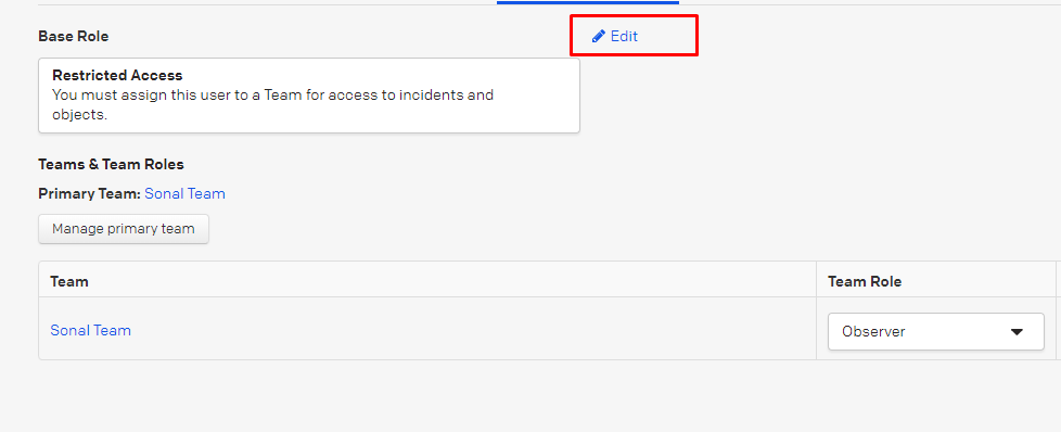 4. Select **Edit** option beside Base role: