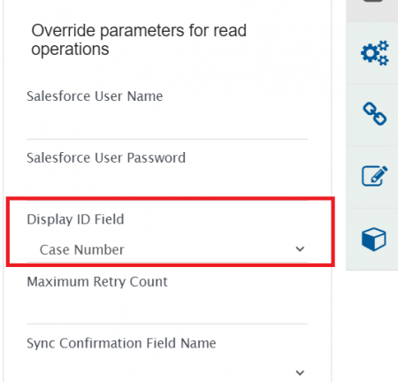 * The above selected field value is considered as a display id in <code class="expression">space.vars.SITENAME</code>'s sync report. For example, for **Case** entity, user can select **Case Number** in Display ID Field as it is unique and is considered as display id in Salesforce UI.