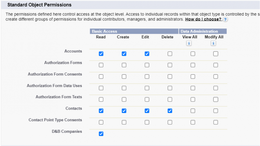 | Standard/Custom Object Permissions | Read            | To view records                                 |