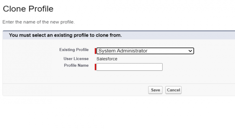 * Select an existing profile which you want to clone and enter the profile name and click **Save**.