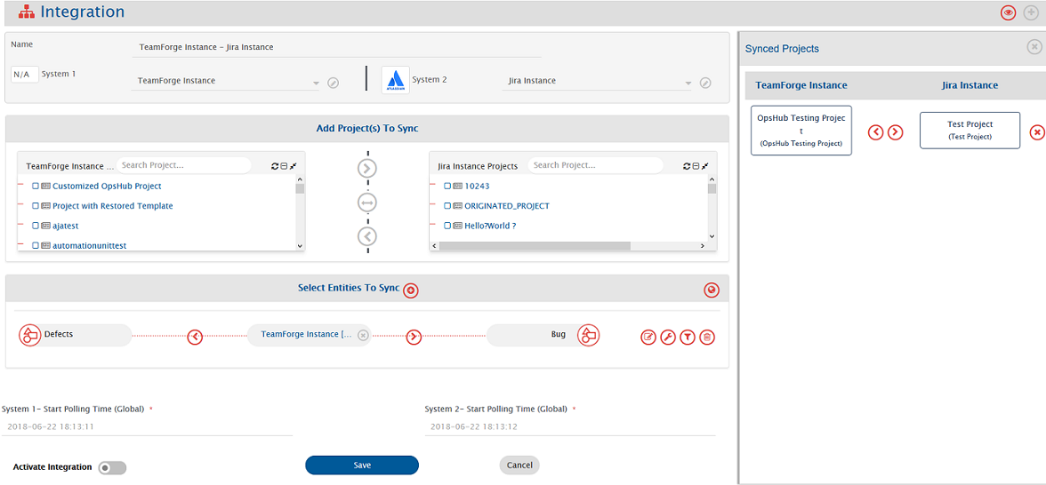 Set a time to synchronize data between TeamForge and the other system to be integrated. Also, define parameters and conditions, if any, for integration. Click [Integration Configuration](https://docs.opshub.com/integrate/configure-integrations/integration-configuration) to learn the step-by-step process to configure integration between two systems.