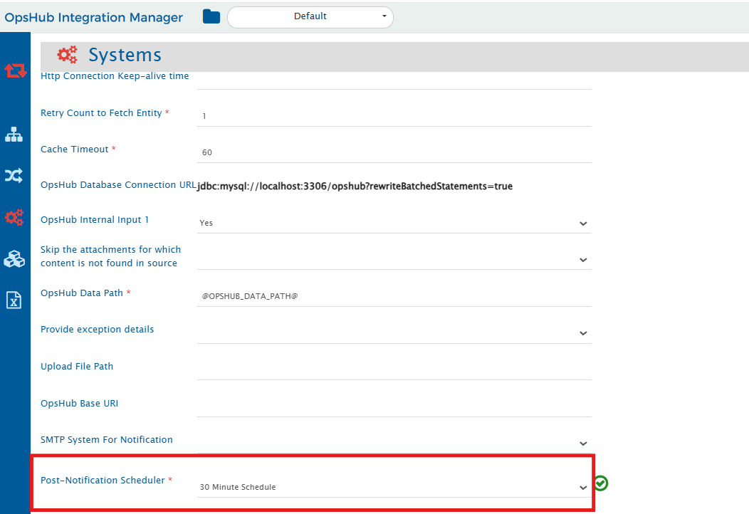 * By default, the value for **Post-Notification Scheduler** will be set to **30 Minute Schedule**. Select an option from drop down to schedule the Post Failure Notification job.