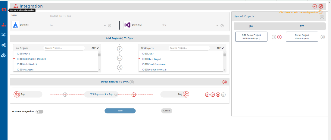* Integration 1: TFS Bug Demo Project to Jira Bug OIM Demo Project