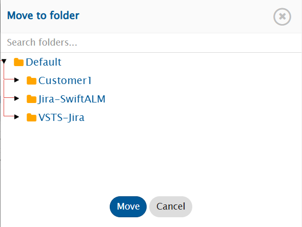 * All the existing folder will be listed, select the folder, and click **Move**.