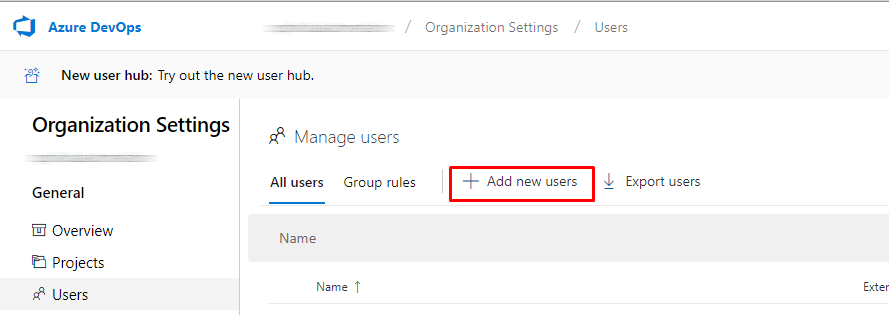* Add a user in Azure DevOps that is dedicated for <code class="expression">space.vars.SITENAME</code>. This user shouldn't perform any other action from Azure DevOps user interface. Please make sure this user or Service Principal has a unique display name across the instance.
