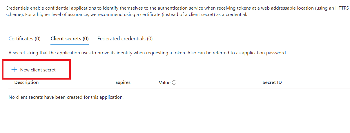 3. Navigate to **Client secrets** tab and add a new client secret.