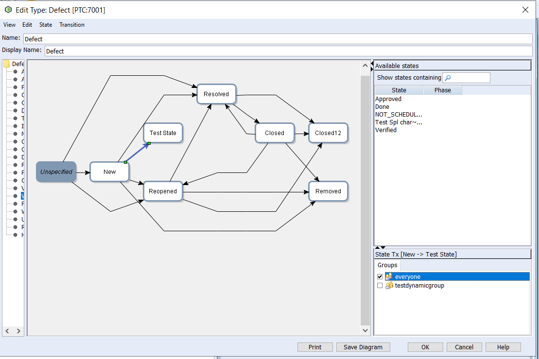 Workflow transition is applicable only when Windchill RV\&S is integrated as a target system. To understand the need for handling workflow transition in Windchill RV\&S, let us take an example: A `Defect` in Windchill RV\&S, when created should be in `New` state. It can then be moved to `Open` state and then to `Resolved` state, but it cannot be directly marked as `Resolved` from `New` state because of the state transition constraints enforced through Windchill RV\&S workflow configuration.