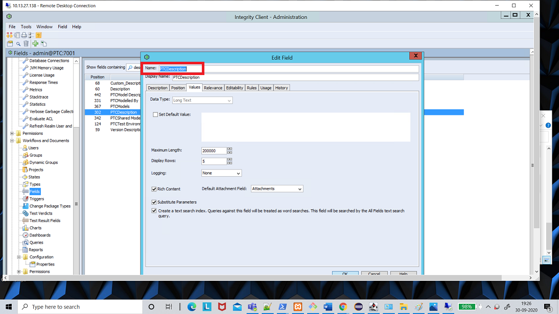 * Hence, if the user has mapped a Long Text field in mapping and then changes the Rich Text configuration of that field in Windchill RV\&S or vice versa, the respective field should be re-mapped in <code class="expression">space.vars.SITENAME</code> mapping to accommodate the field configuration changes.