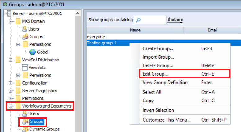 * Go to Windchill RV\&S Integrity Admin Client > Workflows and Documents > Groups.