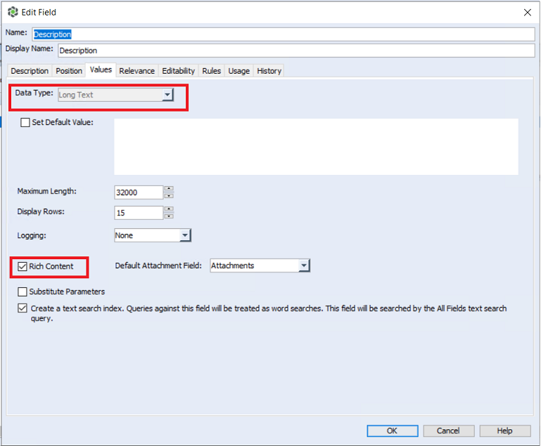 * If the **Data Type** of the field is **Long Text** and it is configured as a **Rich Text** field in Windchill RV\&S system, then only, it will be considered a **Rich Text** field in <code class="expression">space.vars.SITENAME</code> mapping; otherwise, it will be considered a **Text** type field in the mapping.