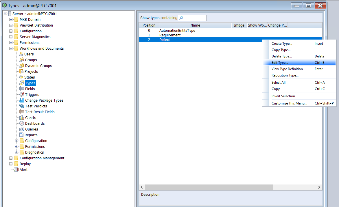 * Go to Windchill RV\&S Integrity Admin Client > Workflows and Documents.