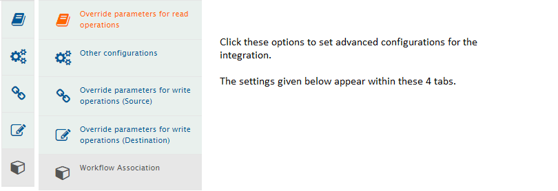 Click the **Configure Advance** icon > Go to **Advance Configuration** pop-up > Select **Override parameters for read operations**. In that screen, the below options will appear.