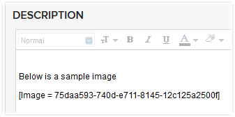 If an inline image is present in a rich text type of field in Blueprint, and the field is mapped as part of synchronization, then a tag describing the image code (e.g. `[Image = 664e7713-490d-e711-8145-12c125a2500f]`) will be visible in the target field (which is mapped corresponding to Blueprint Rich Text field) instead of the inline image.