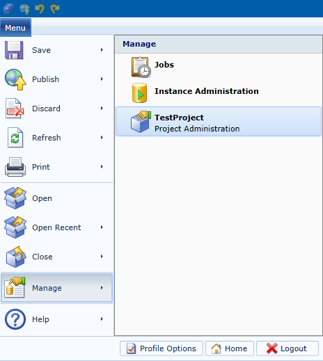 * Bring up the Instance Administration page by selecting **Menu → Manage → Instance Administration**.