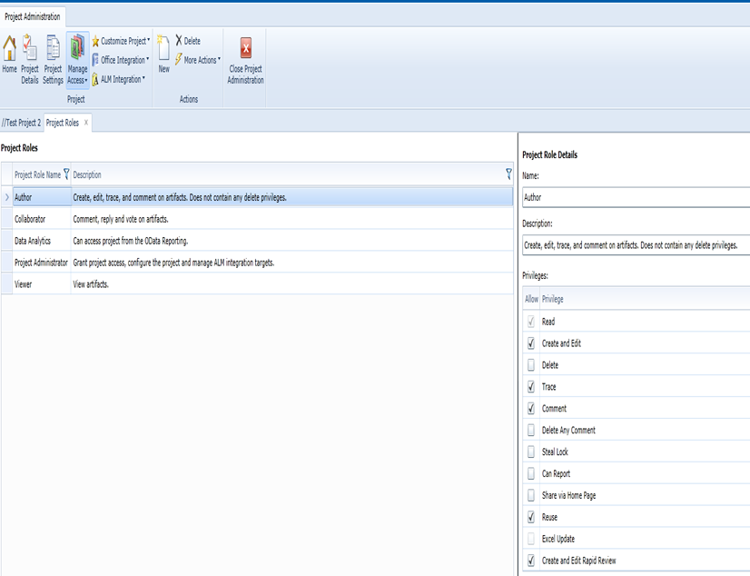 * Click on **Project Roles**, here you can check all the roles that can be assigned to a user.\