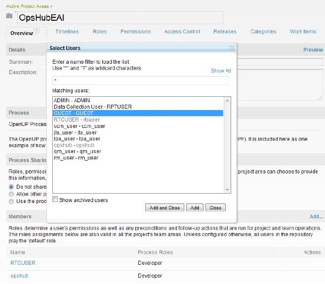 * Integration User must have at least one out of 'Contributor Client Access License', 'Developer Client Access License' and 'Stakeholder Client Access License' assigned, and 'Repository' permissions should have at least one of the 'JazzUsers', 'JazzProjectAdmins' and 'JazzAdmins' marked. For step-by-step guide, please refer to [User Privileges](#user-privileges).
