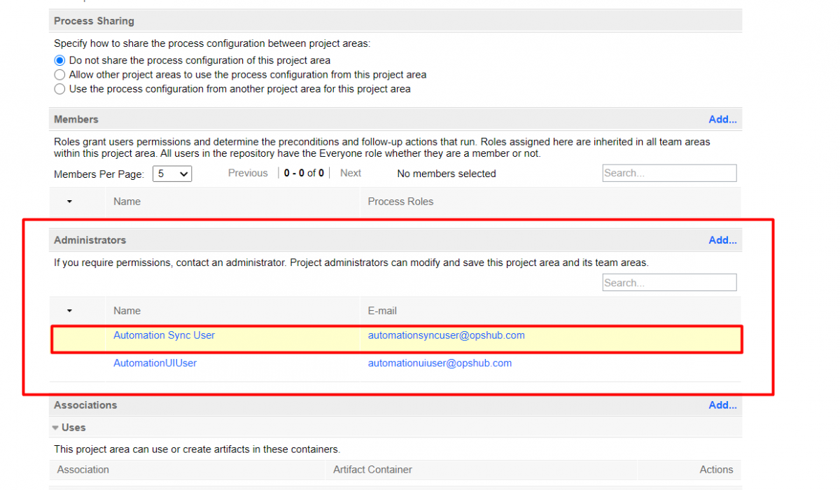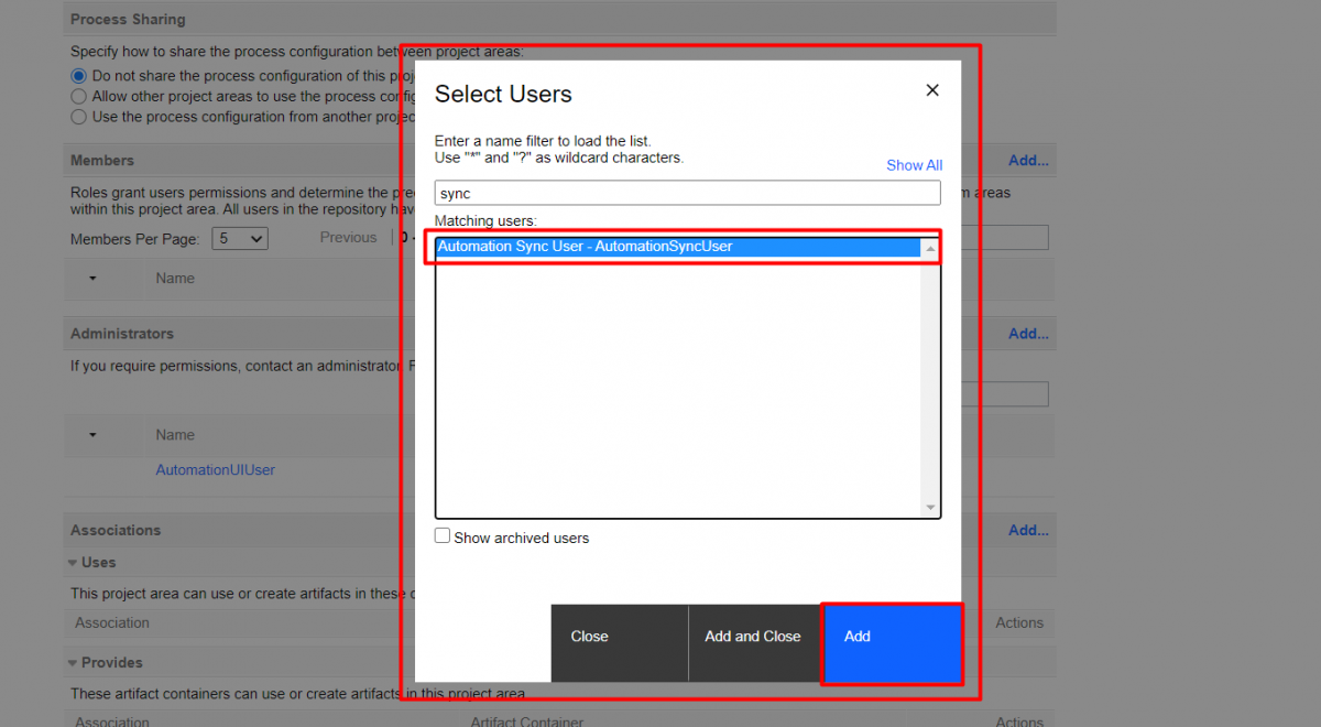 * If the project's read access setting is set to **Members of the project area hierarchy and users in the access list**, then the sync user must either be one of the members in the project or must be present in the access list (under **Browse Access List**) of the project to be synchronized.