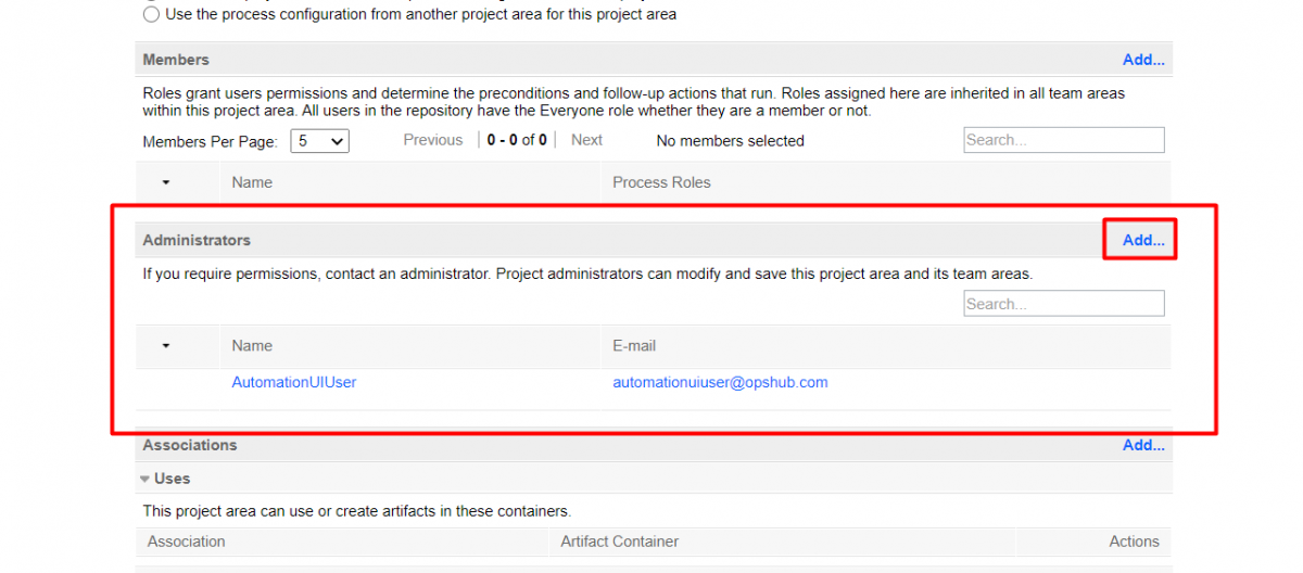* There will be a list of **Administrators**. Click on **Add** button to add a new administrator in the project.