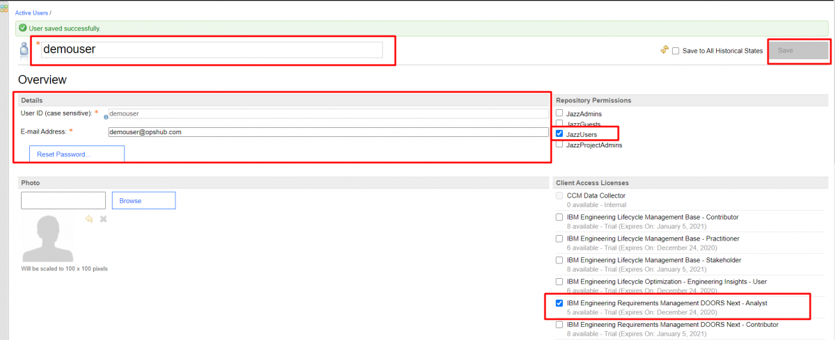 | **IBM Engineering Requirements Management DOORS Next - Analyst**     | This is the minimal license required by the user for having read/write access in DOORS Next | DOORS Next is target system. Also, when DOORS Next is source system, then this license is required for [Remote Id or Remote Link configuration](https://docs.opshub.com/v7.215/integrate/configure-integrations/integration-configuration#tracking-id-and-link-of-entities-across-systems) in integration. |