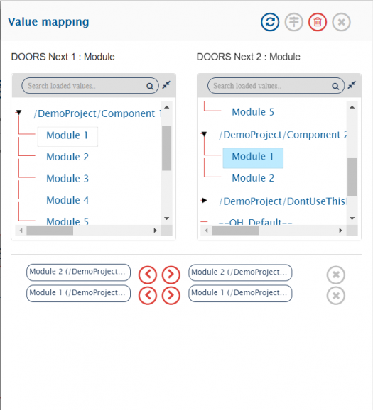 > **Note**: The permissions in DOORS Next can be configured per project. Thus, only those projects will be visible in mapping and integration for which sync user has read permission. Refer to section [Read access in project](#access-control) for more information on giving read permissions to sync user.