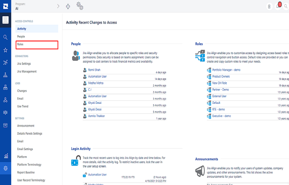 1. Login to Jira Align using the user with privileges to create a new user.<br>