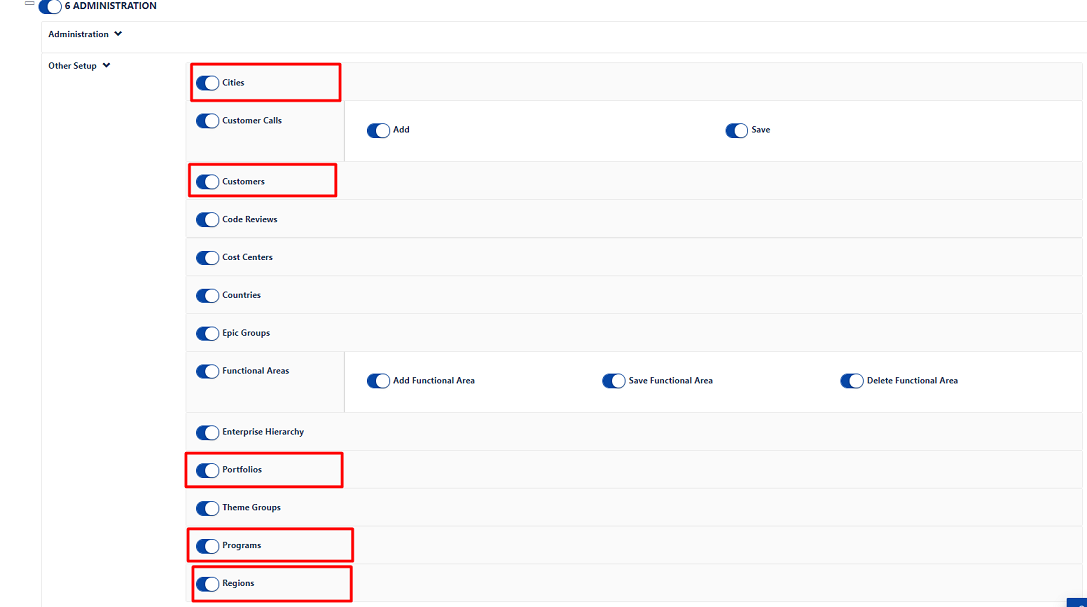 | **Portfolio**           | Administration      | Add Agile Objects, Manage Agile Objects(Admin) |