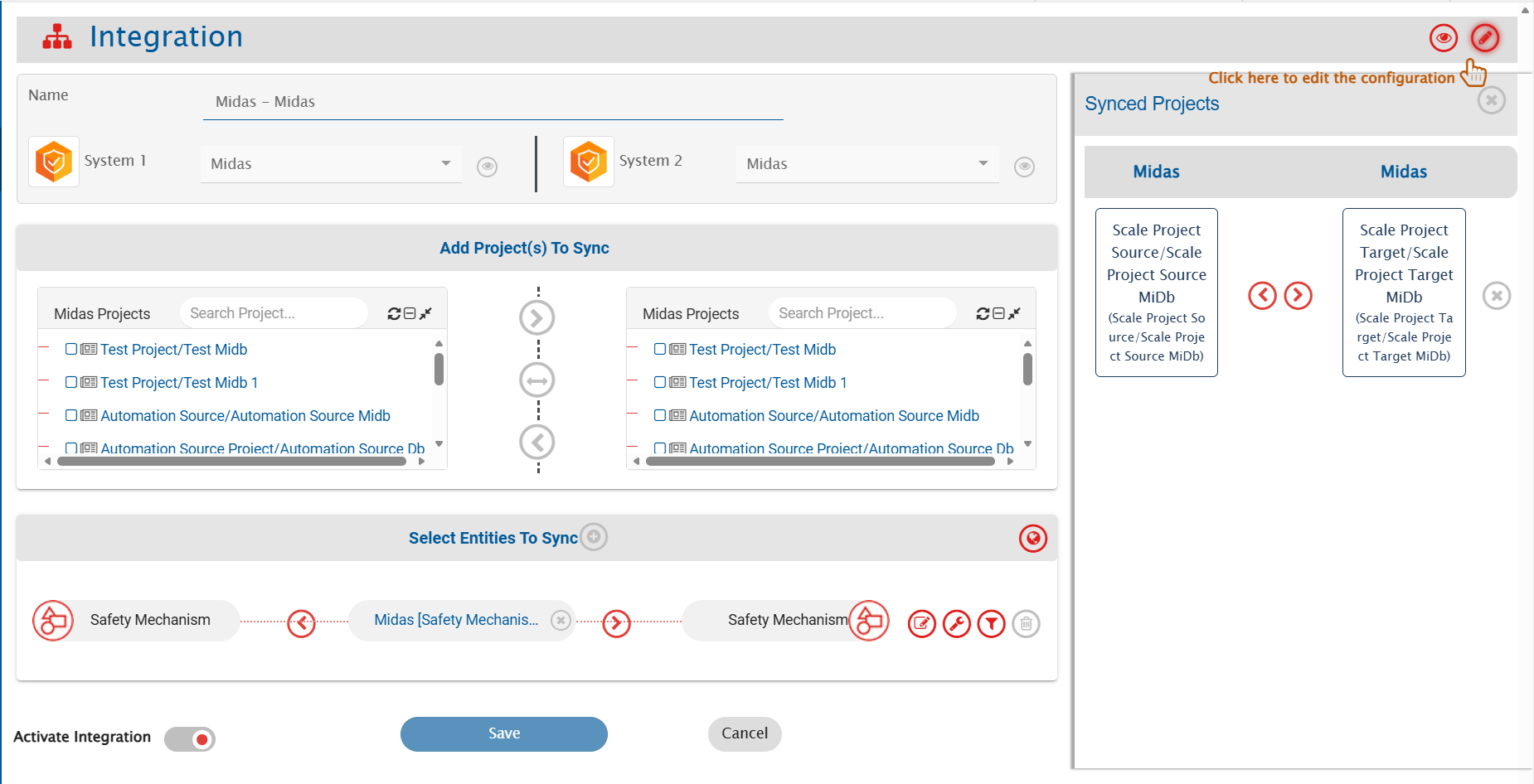 * To enable synchronization, the service account user must have access to the target project in Midas.