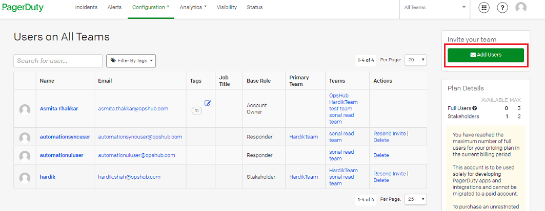 1. Create a user in PagerDuty that is dedicated for <code class="expression">space.vars.SITENAME</code>. This user shouldn't perform any other action from PagerDuty's user interface. We will refer to this user as IntegrationUser further in the document. For the steps to add user, please see [Steps to Add User](#steps-to-add-a-user).