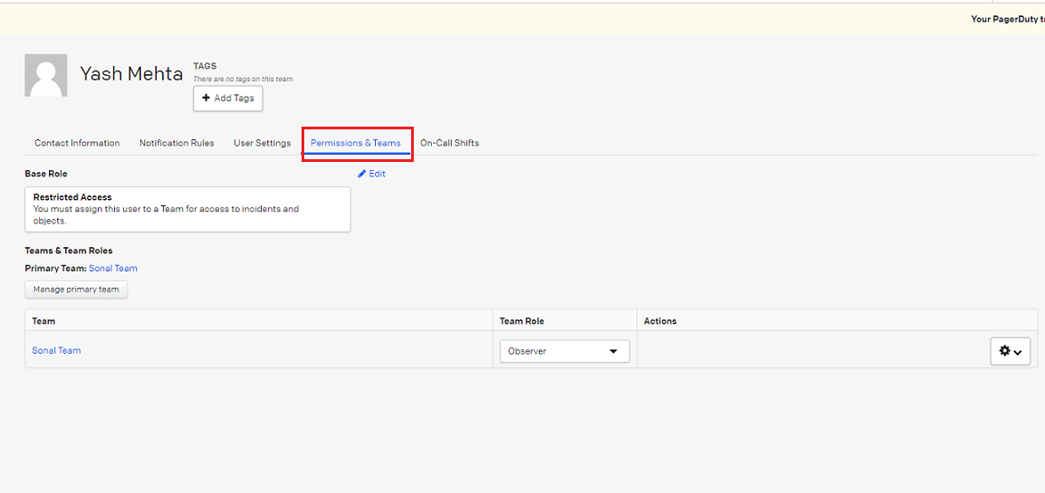 *For better understanding of **User Roles** at team level from PagerDuty context, refer:* [*User roles at Team level*](https://support.pagerduty.com/docs/advanced-permissions)