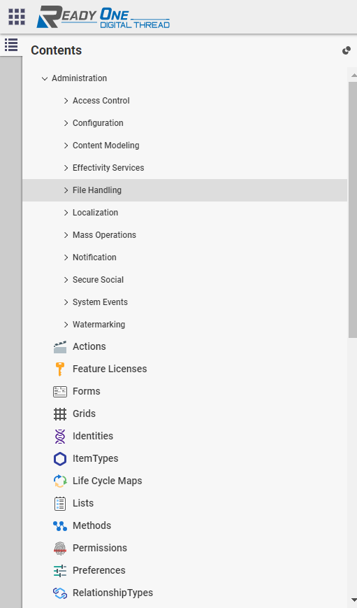 3. Expand **Administration** tab to access `ItemTypes`, `Users`, `Identities`, etc.