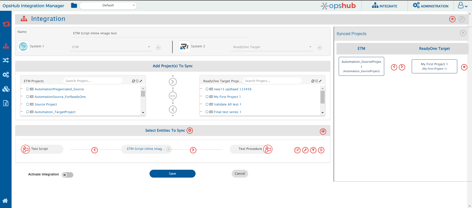 * If the user wants to specify conditions for synchronizing an entity between ReadyOne and the other system to be integrated, refer to this **Criteria Configuration** feature section.