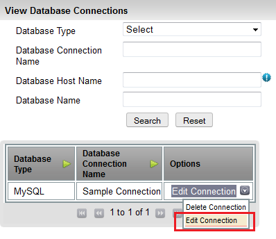 3. Click on **Edit Connection** next to the Database Connection you want to edit in the configured connections.