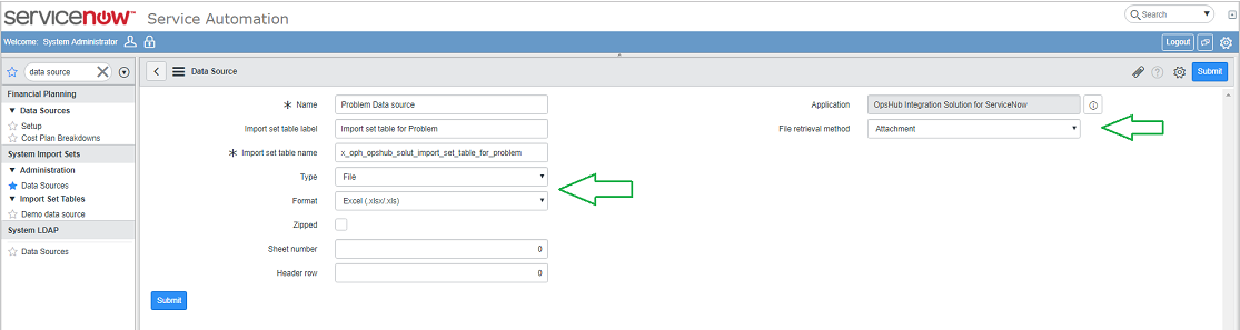 * Type 'Data source' in navigator and click 'Data Sources' under 'System Import Sets'.