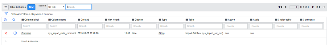 * For every field in original table that needs to be written through synchronization, create one field in your import set table as shown below (No field is required for synchronizing attachment and comment. For work notes though, you need to create a field in import set table).