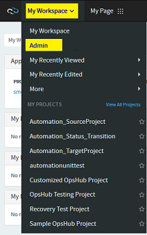 * Navigate My Workspace → Admin as shown in the screenshot.