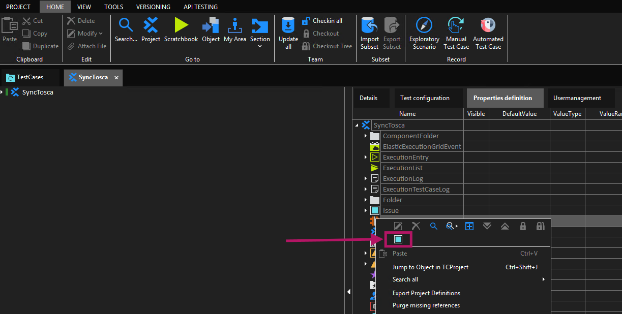* To synchronize data from a specific Tosca workspace, the user needs to create a cloned workspace of the original one for integration through <code class="expression">space.vars.SITENAME</code>.