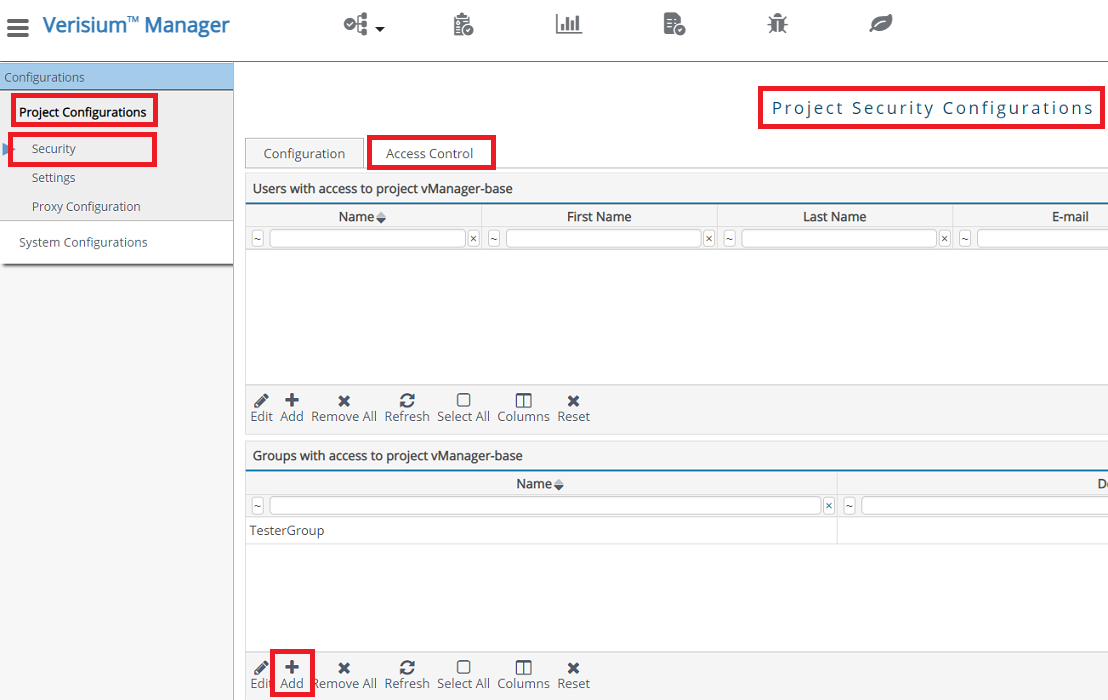 * Select "Project Configurations" -> "Security" -> "Access Control"
