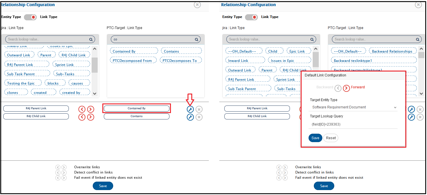 * Configure the default link with the **Target Lookup Query** as **(field\[ID]={$defaultParentAsDocId})**. Click on [Relationship](https://docs.opshub.com/v7.215/integrate/configure-integrations/mapping-configuration#relationships) for more details on default link configuration.