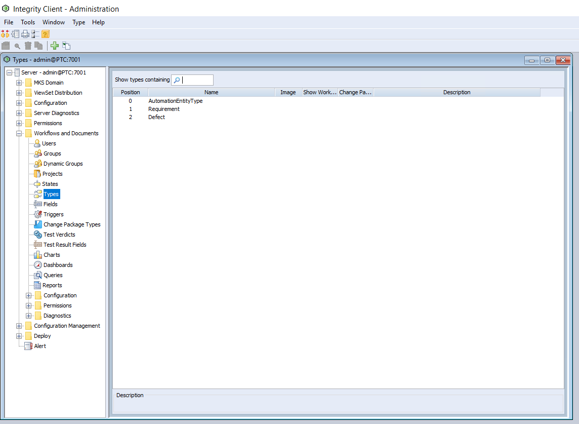 * Go to Windchill RV\&S Integrity Admin Client > Workflows and Documents.