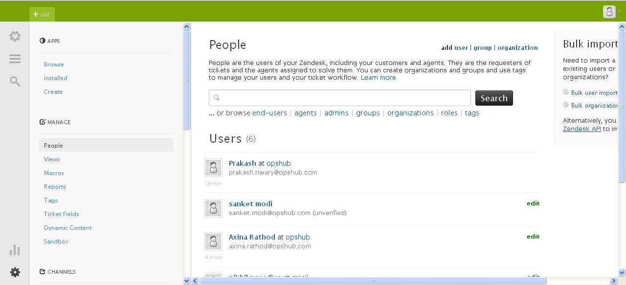 * Create one user of Zendesk System, dedicated to <code class="expression">space.vars.SITENAME</code>. User should not do any operations from System's User-Interface.