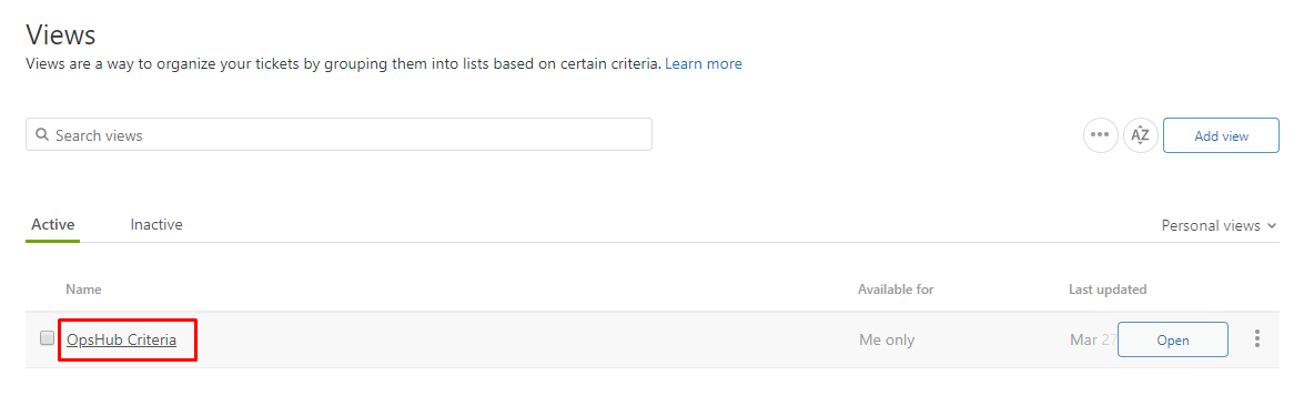 The steps given below explain how to make view in Zendesk for enabling criteria: