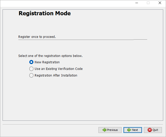 Once you select **Registration After Installation**, the following screen will appear after installation: