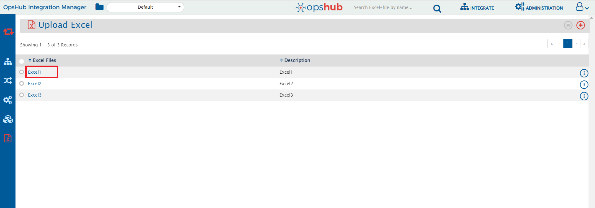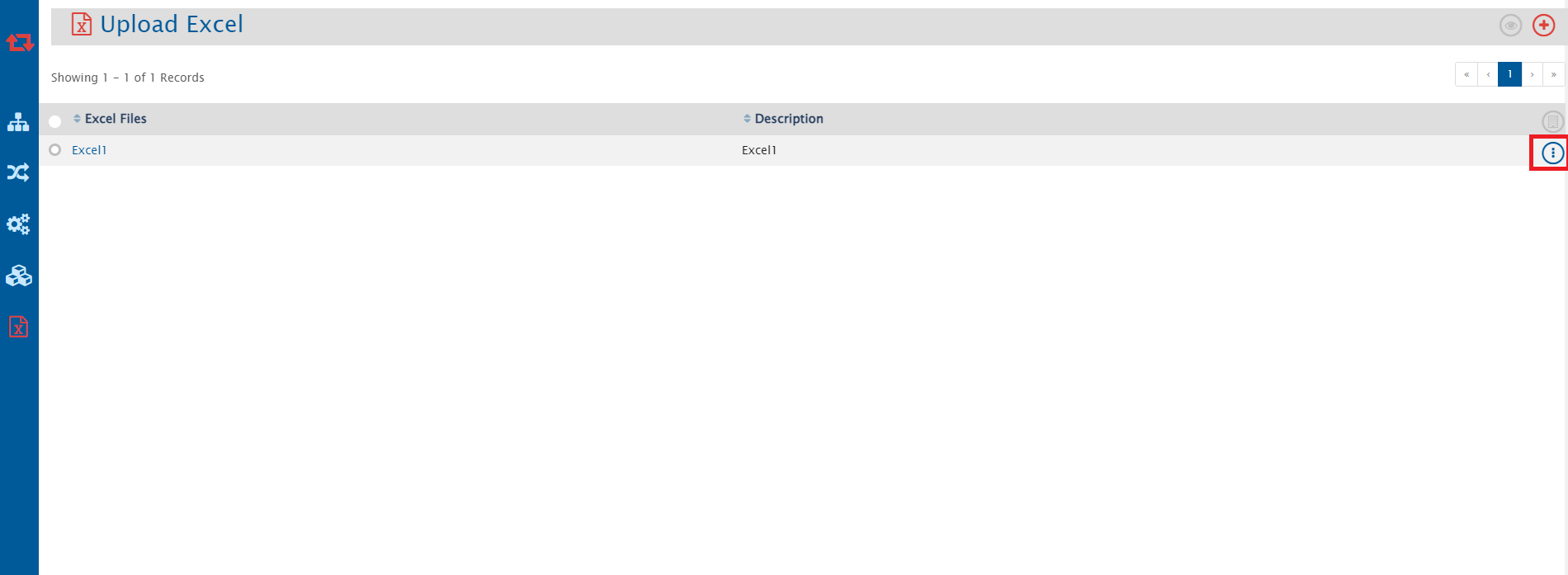 * To upload a new excel file, click on the plus sign given at the top right corner.