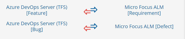 Example: **Feature** from Azure DevOps Server (TFS) and **Micro Focus Quality Center Requirement** from Micro Focus ALM.