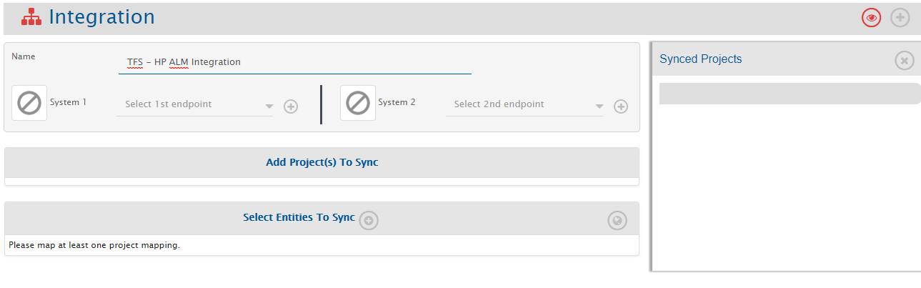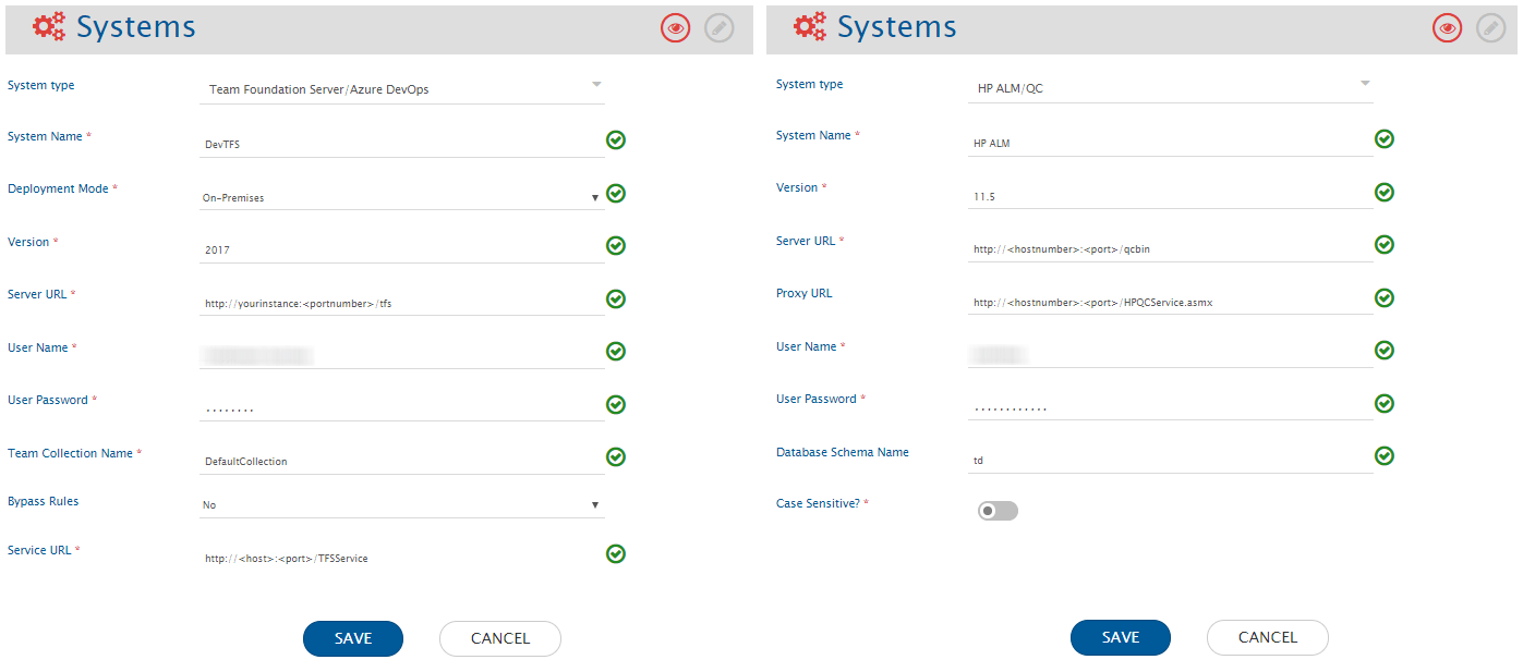 * Click plus \[+] icon adjacent to the System 1 and System 2 fields one by one to configure Azure DevOps Server (TFS) and Micro Focus ALM.
