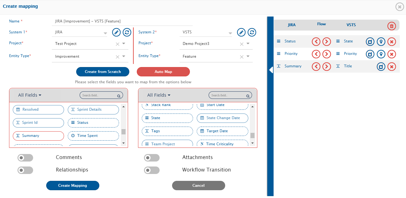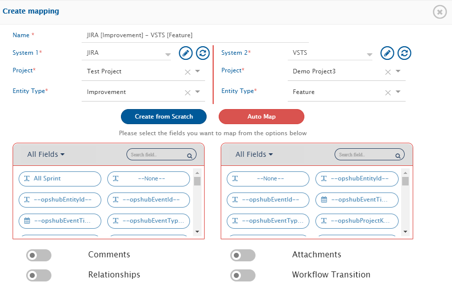 At this stage, you can also map entities such as comments and attachments. Refer to the videos on this page to learn in detail about [Comments](https://docs.opshub.com/v7.215/integrate/configure-integrations/mapping-configuration#comments) and [Attachments](https://docs.opshub.com/v7.215/integrate/configure-integrations/mapping-configuration#attachments) mapping.